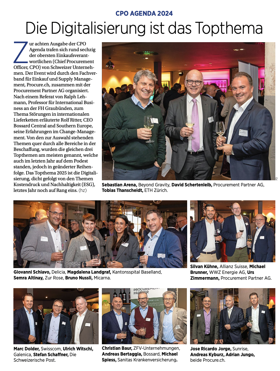 Seit 2016 führen Procurement Partner AG und procure.ch gemeinsam die CPO-Agenda durch. Die Veranstaltung bietet Beschaffungsverantwortlichen namhafter Unternehmen ein exklusives Format für den Austausch untereinander. Die Teilnehmenden erhalten stimulierende Gedankenanstösse, vorgestellt durch Referate von Persönlichkeiten aus der Wirtschaftsszene und Wissenschaft.